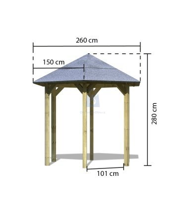 Dřevěný šestiboký zahradní altán KARIBU LISABON slouží jako místo odpočinku pro dvě osoby. Čtyři sloupy o průřezu 90 x 90 mm podpírají střechu s masivními příčnými podpěrami. Konstrukce zahradního altánu je tlakově impregnována a je tak dobře chráněna proti dřevokazným houbám i hmyzu, ale i proti nepříznivým povětrnostním podmínkám. Impregnace je zdravotně nezávadná a naprosto bezpečná. Vzhledem k velkým plochám střechy a zatížení větrem je nutné připevnit altán k zemi pomocí odpovídajících H kotev v délce cca 60 cm (nejsou obsahem dodávky).