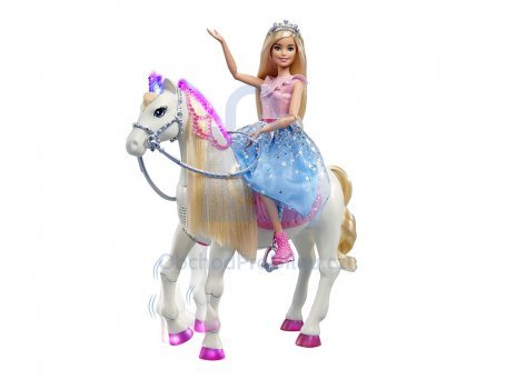 Barbie princess adventure princezna a kůň se světly a zvuky jistě potěší každou malou slečnu. Vydejte se společně s Barbie a jejím koníkem na cestu plnou dobrodružství. Tato kolekce je inspirována oblíbeným filmem Princess Adventure. Koník se umí skutečně pohybovat a dokonce vydává zvuky a svítí. Stiskni jeho čelo a sleduj, jak začne pokyvovat hlavou, řehtat nebo se pohybovat do rytmu písniček. Panenka Barbie má na sobě krásný princeznovský obleček a díky ohebným kolenům se může pohodlně usadit do růžového sedla.