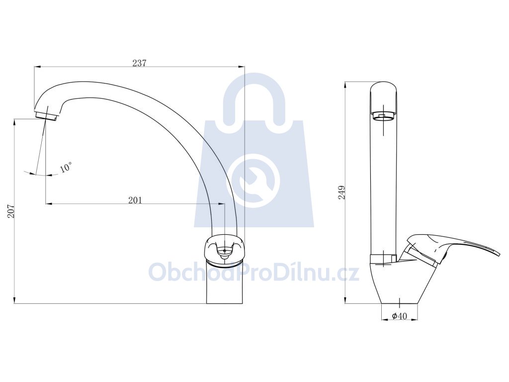 Dřezová stojánková páková baterie určená k regulaci průtoku a teploty vody v kuchyňských instalacích. Provedení s horním ramínkem je vhodné pro použití nad dřezem. Baterie je osazena kartuší o průměru 35 mm. Povrchová úprava je provedena v chromu. Konstrukce je určena pro standardní stojánkovou montáž.