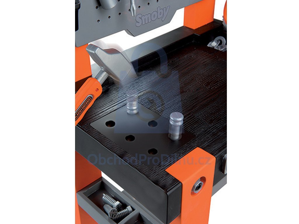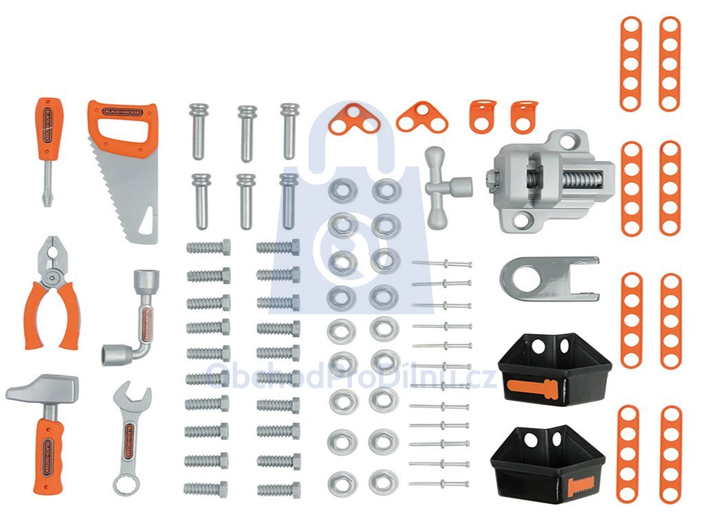 Pracovní dílna Black&Decker, kterou musí mít každý malý opravář. Tato dílna obsahuje nářadí jako jsou šroubky, matičky nebo svěrák. Mimo jiné má i závěsy a přihrádky pro malé automechaniky. Děti rády napodobují chování dospělých, dílna s bohatým vybavením je skvělým řešením! Děti si, při hraní s dílnou, rozvíjí jemnou motoriku a technické chápání formou hry. Vhodné již od 3 let. Doplňte vaší ratolesti dětskou dílnu, která pomáhá rozvíjet kreativitu a zručnost.