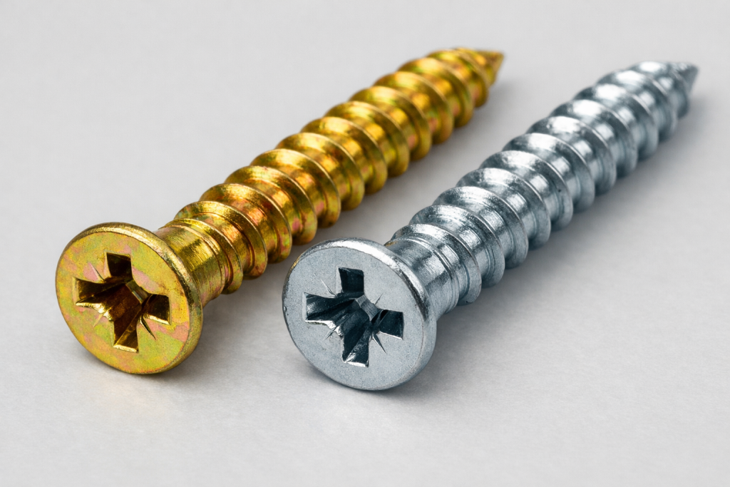 Při výběru vrutů si určitě všímáte rozdílných barev – nejčastěji žluté a stříbrné. Nejde o design ani o náhodu. Barva vrutu je důležitou informací o povrchové úpravě, ochraně proti korozi a vhodném použití. Správná volba barvy má zásadní vliv na životnost a spolehlivost spoje. V tomto článku vám jednoduše vysvětlíme, jaký je rozdíl mezi žlutými a stříbrnými vruty a kdy který zvolit.