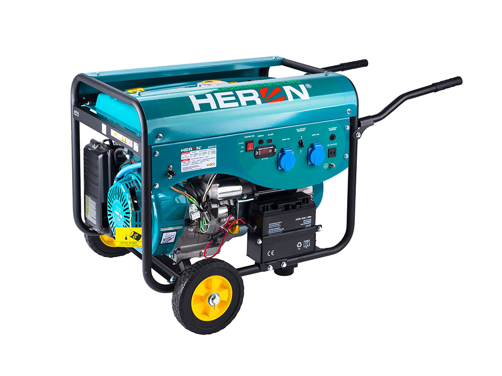 | Elektrocentrála benzínová a plynová 6,3 HP / 2,4 kW, el. start, HERON | Elektrocentrála benzínová a plynová 13 HP / 5,5 kW, el. start, HERON |