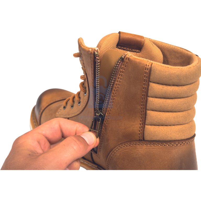 Model HOMBEE je vyroben z broušené kůže s moderní vintage úpravou a vybaven lehkým podešvovým systémem EVA/guma, který zajišťuje stabilitu a absorpci nárazů. Praktický zip po vnitřní straně umožňuje snadné nazouvání, zatímco polstrovaná zadní část a jazyk přinášejí pohodlí a lepší ochranu během práce.