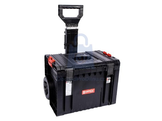 | provedení, specifické vlastnosti | plastový box na nářadí s kolečky, vybavený teleskopickou hliníkovou rukojetí pro snadný transport |