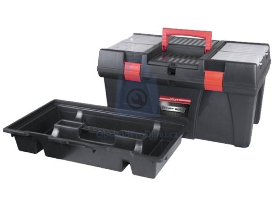 Box plastový s organizérem STUFF SEMI Profi – PATROL je kufr na nářadí z kvalitního plastu, doplněný o dva organizéry ve víku pro uložení drobných součástek. Pro vyšší bezpečnost je vybaven otvorem pro visací zámek.