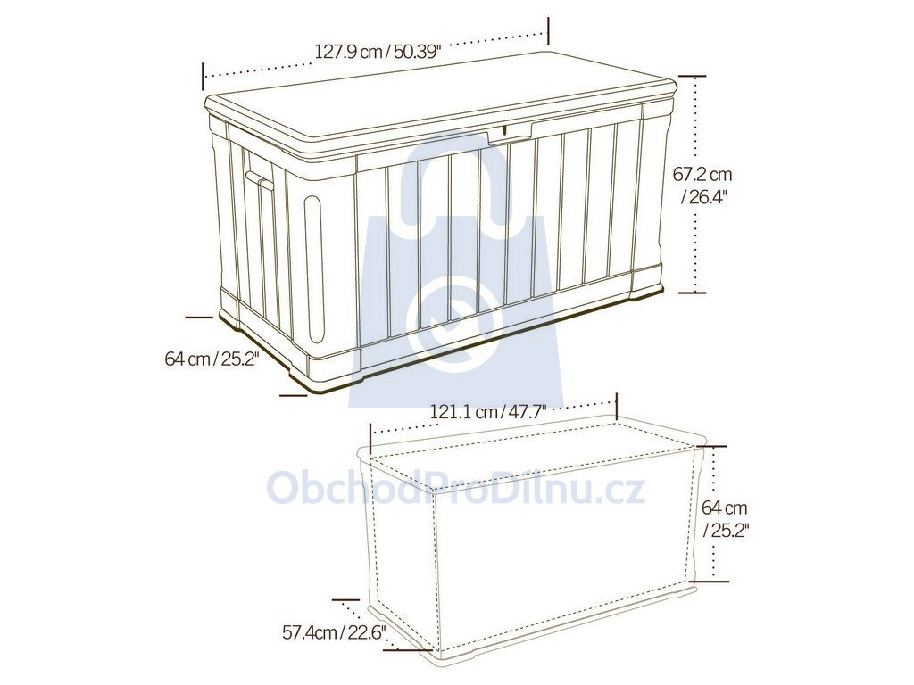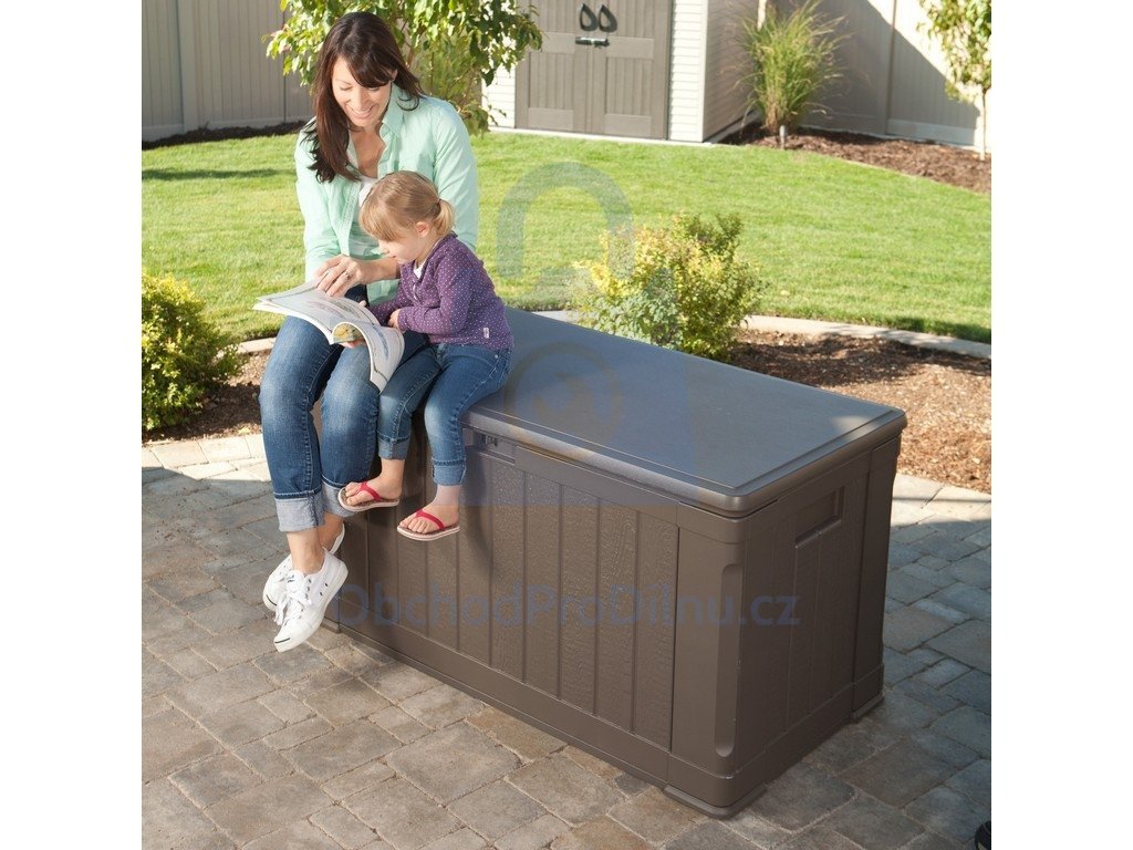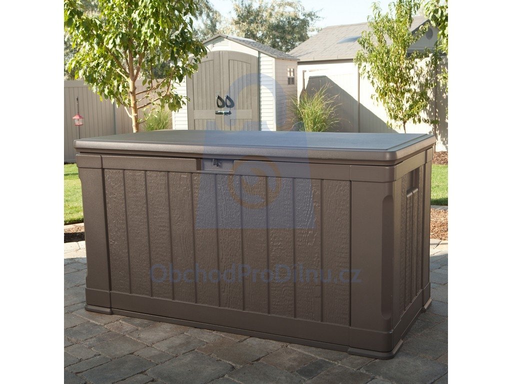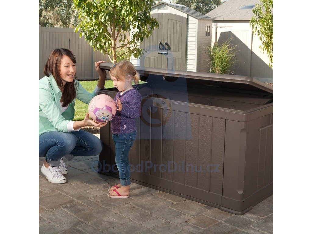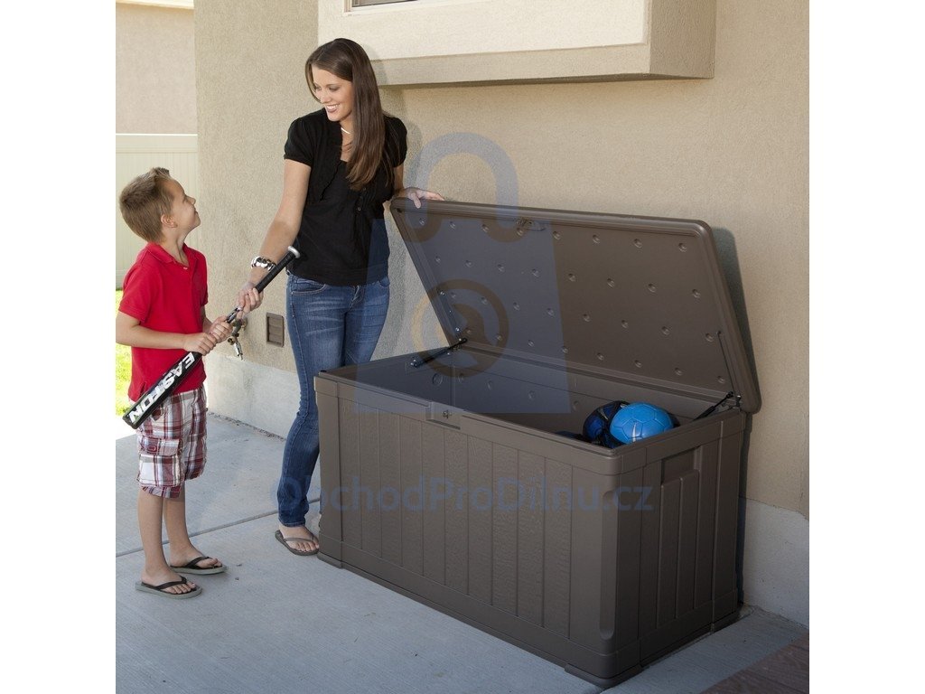 Jedná se o velký zahradní plastový box (objem 440 l), který je vhodný pro uskladnění jakýchkoliv předmětů, které se Vám válí po Vaší zahradě a Vy nevíte kam s nimi. Konečně budete mít veškeré věci z Vaší zahrady pod úplnou kontrolou. Ať už se jedná o zahradní nářadí, dětské hračky, bazénové příslušenství nebo dokonce jen o látkové podsedáky z Vašich zahradních židlí, vše plastový box uschová.