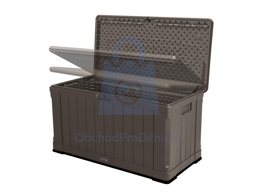 Díky výrobci, jakou je společnost LifeTime má úložný box i jisté designové prvky, díky kterým dokonale splyne s Vaší zahradou. Samozřejmostí je možnost uzamknout box pomocí visacího zámku v případě potřeby.