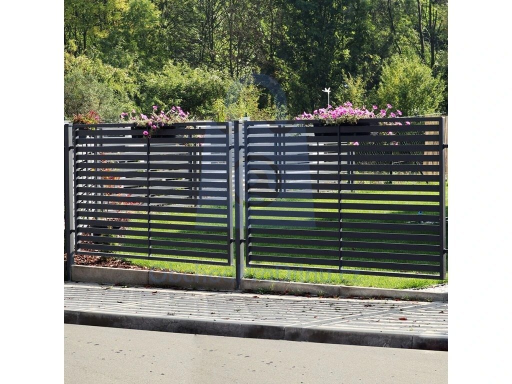 Brána dvoukřídlá kovová – ARIZONA svým moderním vzhledem skvěle ladí se současnou architekturou. Součástí balení je elektrický pohon Easy Way 201/202; pro specifické instalace je k dispozici také varianta bez pohonu.