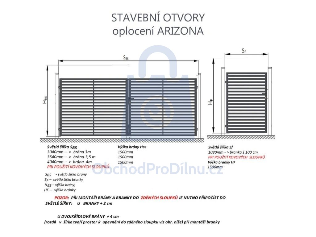 Upozornění k instalaci: dvoukřídlou bránu s pohonem nelze instalovat na betonové sloupky. Doporučujeme použít kovové sloupky doporučené výrobcem.