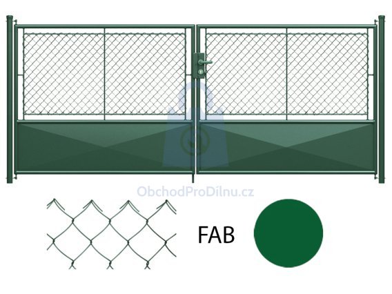 Brána dvoukřídlá s plechem, zelená, 4HR výplet, FAB - Technické info: