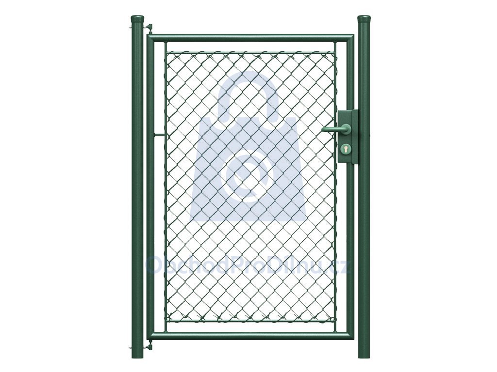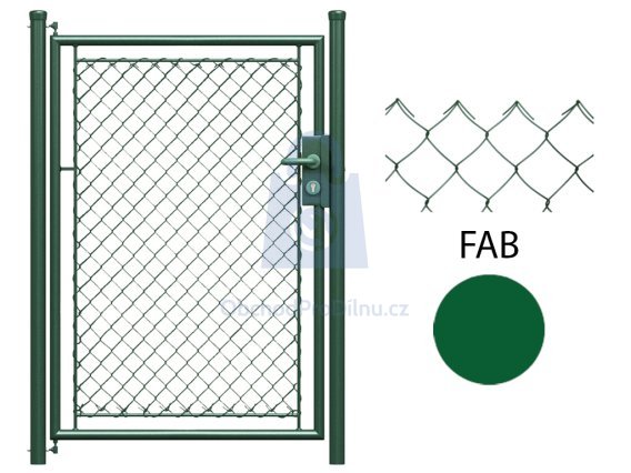 Vnější rám branky je vyroben z ocelové trubky o průměru 42 mm a tlouškou stěny 2 mm, jedná se o pevnou a odolnou konstrukci. Vnitřní rám pro pletivo má průměr 18 mm. Pletivo, kterým je tvořena výplň, je čtyřhranné s oky 50x50 mm, poplastované zeleným PVC (RAL 6005). V brance je příprava na FAB zámek, po vložení zámkové vložky (není součástí) bude branka uzamykatelná. Do bran a branek jsou vhodné stavební vložky FAB rozměru 30/30 nebo 30/35. Branka je univerzální (pravá i levá), směr otvírání si určíte sami tím, jak umístíte pantový a dorazový sloupek.
