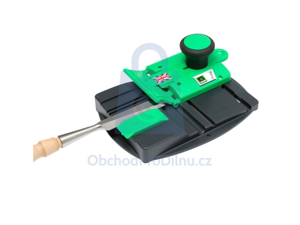 Brousící přípravek slouží pro vyostření čepelí dlát šíře 3–85 mm pod úhlem 23–90 stupňů. Balení obsahuje 4 diamantové destičky s hrubostí 200, 400, 800, 1200 a také 3 micro fólie na vyleštění. Velikost: 200 x 160 x 62 mm.