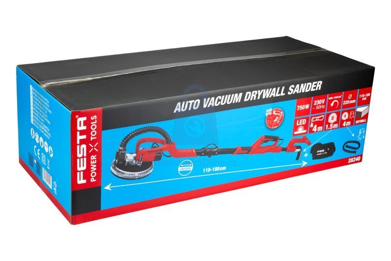 Teleskopická nástěnná a stropní bruska na sádrokarton je určená pro profesionální i domácí použití. Díky výkonnému 750W motoru a integrovanému odsávání prachu je broušení efektivní, čisté a méně namáhavé. Bruska je vybavena teleskopickým nastavením délky od 110 do 180 cm, což umožňuje pohodlné broušení stěn i stropů bez nutnosti použití žebříku.
