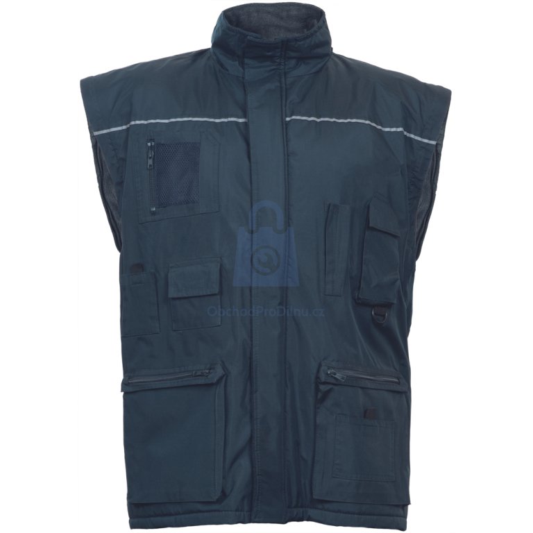 charakteristika produktu odepínací rukávy, voděodolný materiál, nastavitelné rukávy se suchým zipem, dvě multifunkční přední kapsy, náprsní kapsy na drobnosti, reflexní detaily