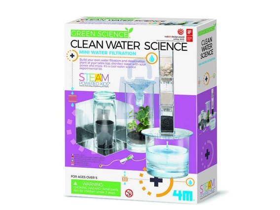 Kreativní stavebnice Čistička vody od značky 4M ze série Green Science umožňuje dětem pochopit principy čištění a recyklace vody. Pomocí této sady si mohou postavit vlastní miniaturní čistírnu a experimentovat s filtračními metodami i procesem odsolování vody. Stavebnice je určena pro děti od 8 let a slouží jako praktická ukázka environmentální vědy. Sada umožňuje provádět pokusy s filtrováním nečistot, odstraňováním soli z vody a pozorováním fyzikálních a chemických procesů čištění. Obsahuje všechny potřebné díly a materiály pro vytvoření funkčního modelu čistírny vody.