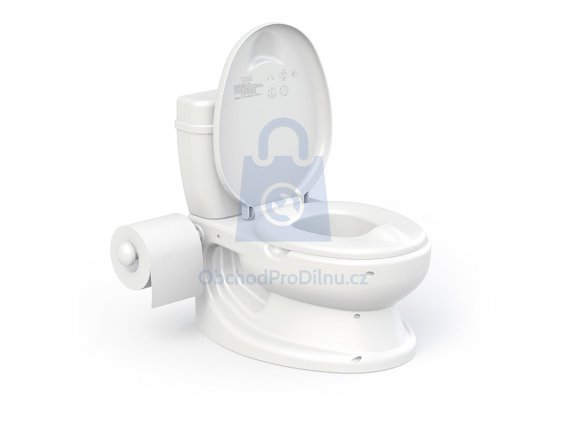 Dopřejte vašim dětem komfort a zábavu zároveň. Tato věrná kopie toalety pro dospělé je skvělou variantou pro nejmenší děti, které již chtějí chodit na opravdový záchod jako dospělé. Přesto je základem tohoto výrobku vyjímatelný nočník, který je omyvatelný. Na boční straně toalety je držák na toaletní papír (papír není součástí balení). Na horní části toalety je splachovadlo, které vydává stejný zvuk jako při spláchnutí.