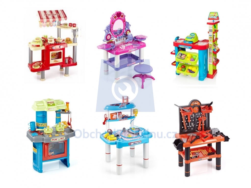 Dětské stolky na hraní budou skvělý dárek a zábava pro Vaše děti! Pořiďte Vaší dceři toaletní stolek nebo kuchyňku a synovi dílnu s nářadím.
