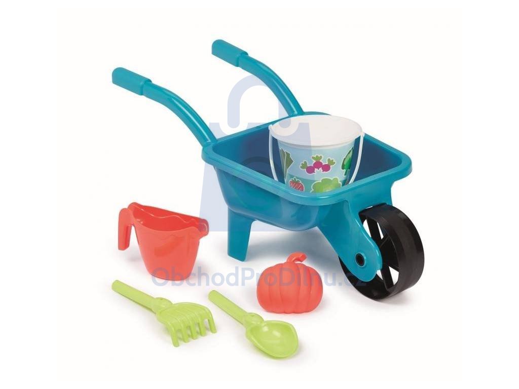 charakteristika produktu obsahuje kolečko (délka 66 cm), konvičku, kyblík, hrabičky, lopatičku a formičku na písek
