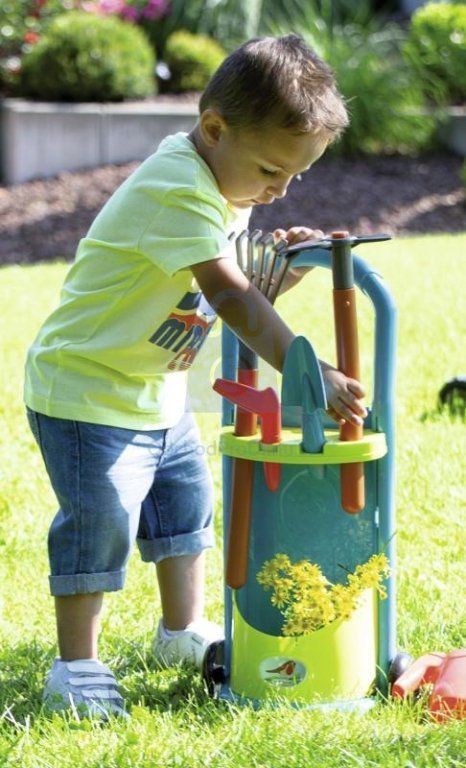 Dětský vozík se zahradním nářadím a konvičkou je ideální hračkou pro malé pomocníky na zahradě od 18 měsíců. Umožňuje dětem napodobovat práci dospělých a rozvíjet jejich zručnost při hrách venku. Součástí sady je vozík s praktickými doplňky pro malé zahradníky. Vozík obsahuje konvičku, dvě hrábě, motyčku, lopatku a vypichovátko pro snadné sázení rostlin. Vyrobeno značkou Ecoiffier z odolného plastu vhodného pro venkovní použití.