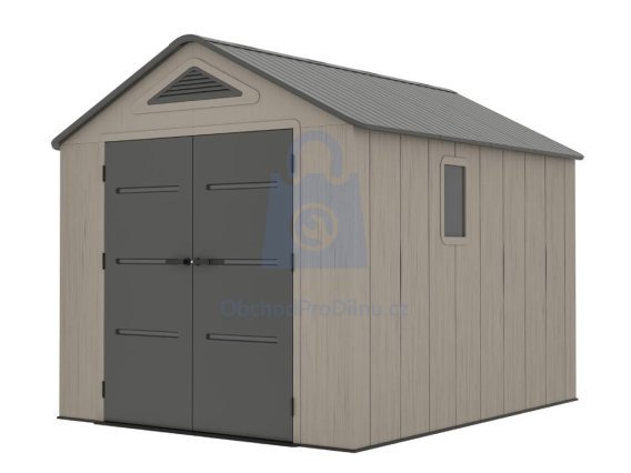 Plastový zahradní domek určený k uskladnění zahradního nářadí, sportovního vybavení, bazénového příslušenství, grilů, campingového a motoristického vybavení. Konstrukce je určena pro celoroční venkovní použití. Domek má nosnou kovovou konstrukci a dvojité plastové stěny. Stěny, střecha, dveře i podlaha jsou vyrobeny z masivního plastu z vysokopevnostního polyethylenu s UV filtrem. Součástí dodávky je protiskluzová plastová podlaha. Montáž je řešena zaklapávacími díly zajištěnými šrouby.