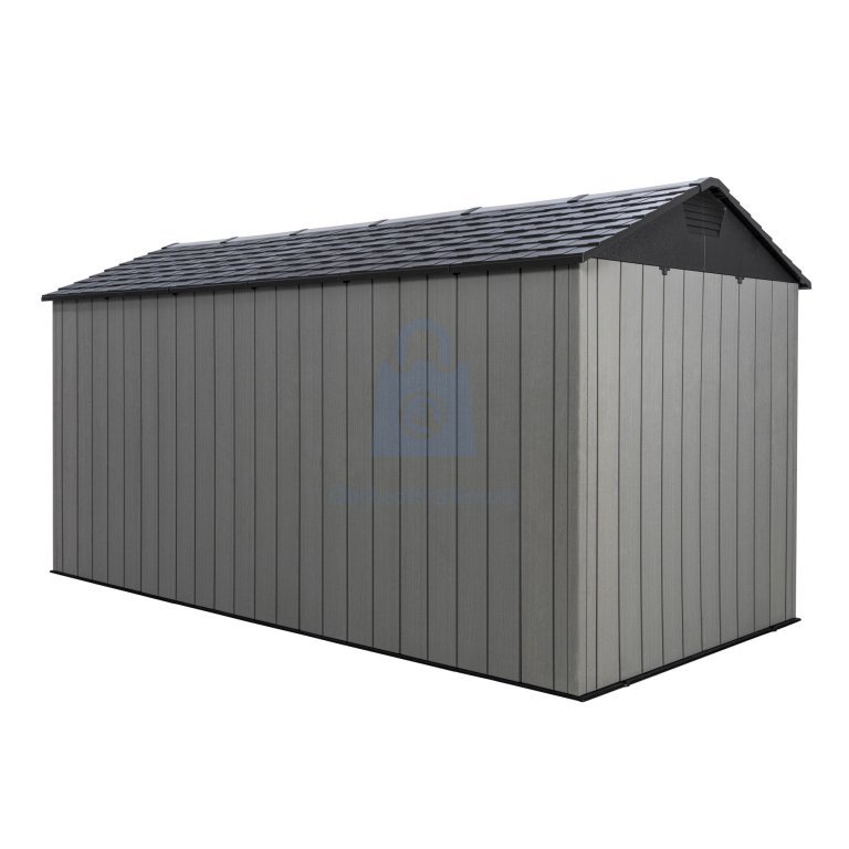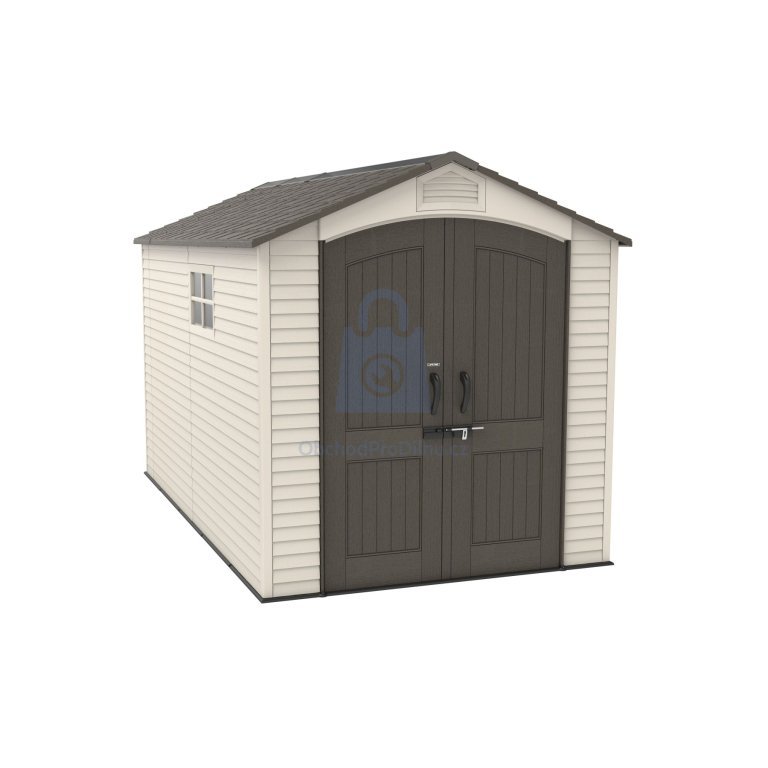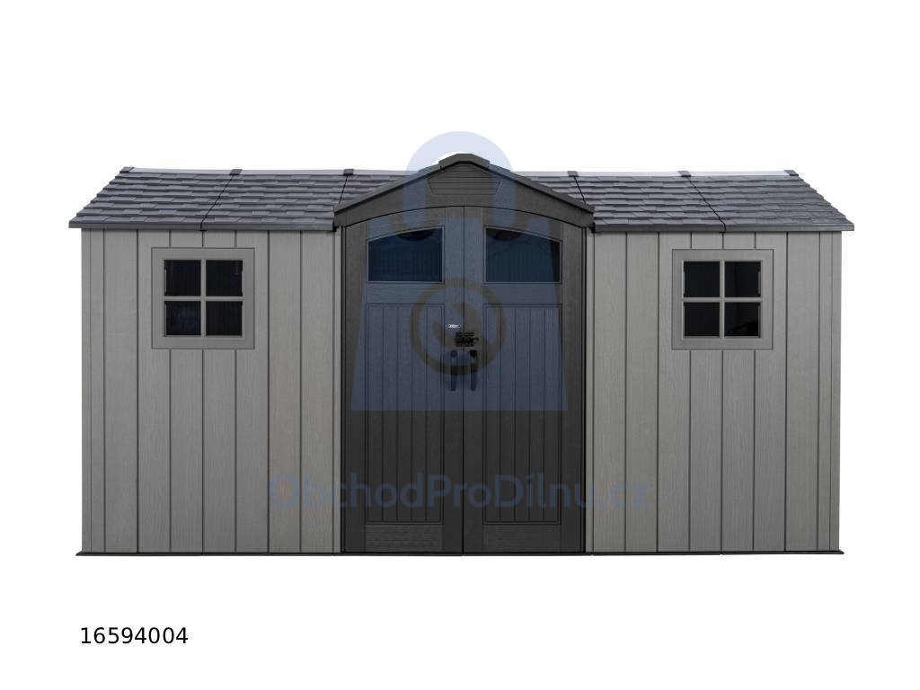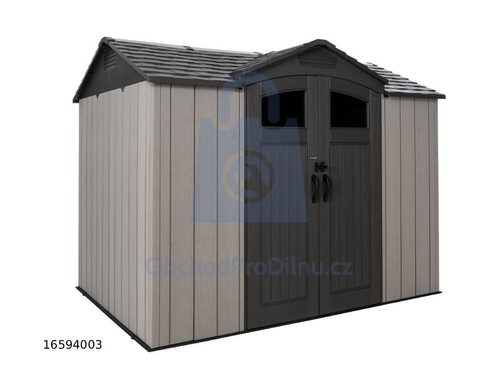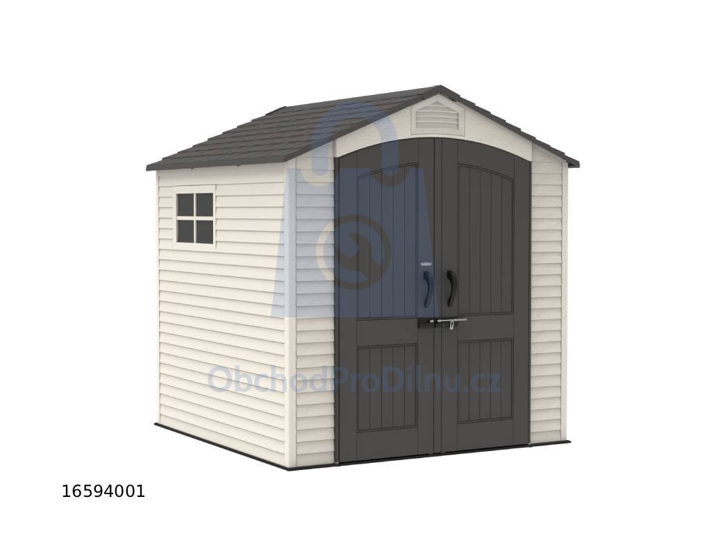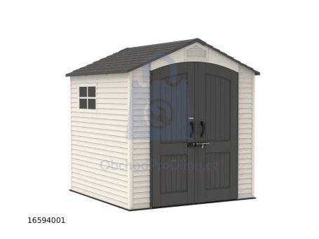 Plastový zahradní domek určený pro celoroční venkovní použití k uskladnění zahradního nářadí, sportovního vybavení, bazénového příslušenství, grilů, kempingového a motoristického vybavení. Domek je dodáván včetně integrované plastové podlahy a je určen k montáži svépomocí. Konstrukce domku je tvořena nosným kovovým rámem a dvojitými plastovými stěnami z vysoce odolného polyethylenu s UV filtrem. Materiál je bezúdržbový, nekoroduje, nežloutne a nekřehne. Díky sklonu střechy 30° je zajištěn dobrý odvod sněhu. Montáž probíhá pomocí zaklapávacích a šroubovaných spojů.