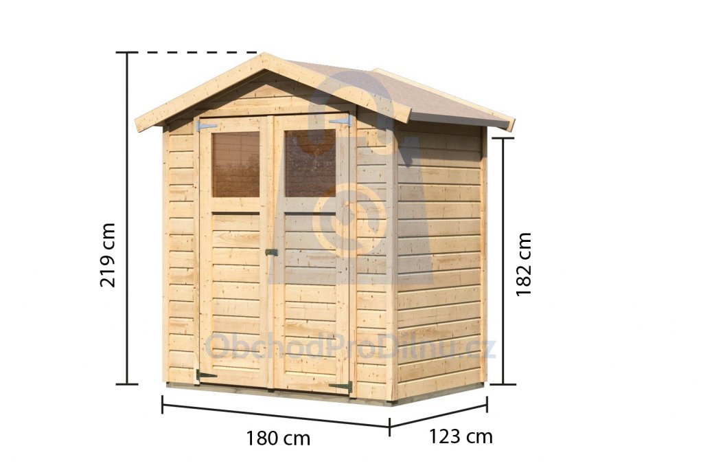 Základní model zahradního domku pro vaši zahradu. Domek má pultovou střechu a dvoukřídlé dveře na pantech s oknem v každém křídle. Je vyroben z profilů o síle 14 mm, které jsou perfektně vyfrézované ze severského smrku. Zahradní domek dodáváme jako stavebnici v rozloženém stavu, kde stěny tvoří jednotlivé dřevěné profily, které pouze sesadíte k sobě a sešroubujete. To garantuje extrémně jednoduchou montáž, kterou zvládne každý kutil. Domek můžete využít k uskladnění zahrádkářských, sportovních, bazénových, grilovacích, campingových, motoristických a dalších potřeb.