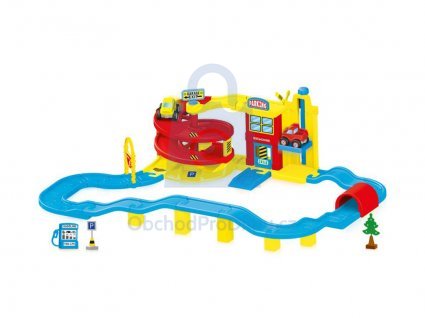 Plastová dráha pro autíčka Dolu vyrobena z kvalitního a odolného plastového materiálu. Určena pro malé řidiče či řidičky starší 18 měsíců. Balení obsahuje: 1x autíčko, 1x pick-up, dopravní značka, strom, pumpa a silnice (celkem 70 dílků). Hračka má funkční výtah i dveře. V naší nabídce naleznete i jiné dětské hračky, ze dřeva či plastu.