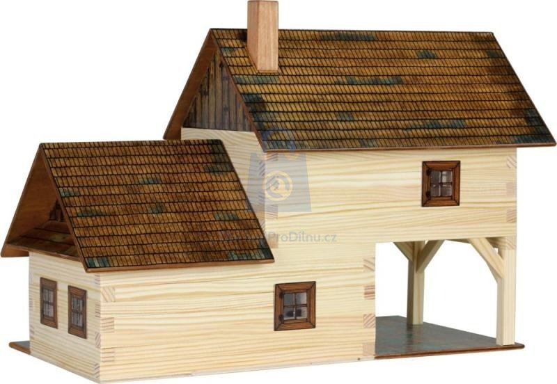 Výrobce: Walachia. Tradiční česká dřevěná stavebnice Hospoda – detailní model valašské stavby určený k lepení, vhodný pro pokročilé modeláře.
