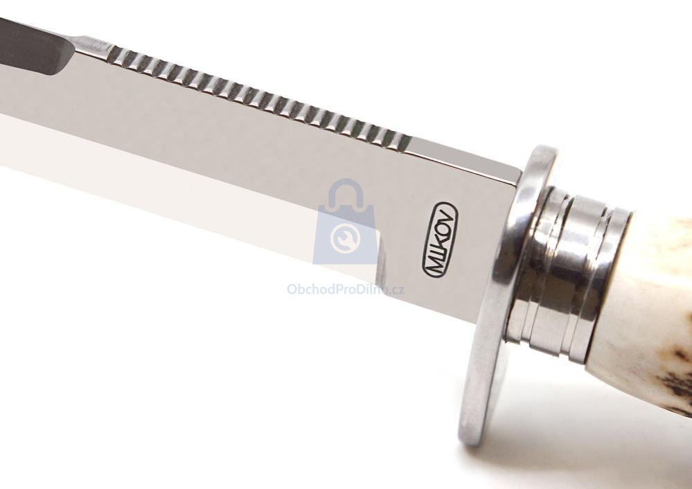 charakteristika produktu čepel s hřbetním vroubkováním, záštita, střenka z pravého jeleního parohu