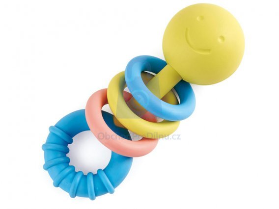 HAPE ECO BABY – Kousátko s kroužky je vyrobeno z kvalitního a bezpečného materiálu na bázi rýže. Tvar kousátka je speciálně vytvořen pro snadné uchopení a držení malými prsty. Kousátko má tři pohyblivé kroužky, které podporují objevování a smyslové vnímání. Kousátko přinese dítěti úlevu, když mu začnou růst zoubky.
