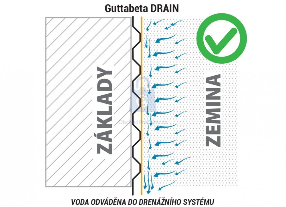 Funkce nopové fólie GUTTABETA DRAIN