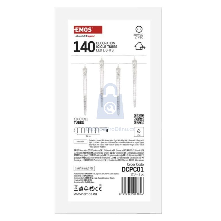 Vánoční girlanda s deseti LED rampouchy je určena pro dekorativní osvětlení v exteriéru i interiéru. Hodí se pro výzdobu oken, střech, zábradlí, pergol nebo jiných míst, kde vynikne její studené bílé světlo. Díky krytí IP44 je odolná vůči vlhkosti a ideální pro venkovní použití. Světelný řetěz o délce 3,6 m je vybaven 140 LED diodami a transparentním kabelem. Napájení zajišťuje síťový adaptér s přívodním kabelem o délce 5 m, což umožňuje snadné připojení i ve větší vzdálenosti od zásuvky.