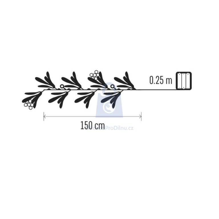 Vánoční girlanda EMOS s motivem jmelí dodá vašemu domovu elegantní a útulnou atmosféru Vánoc. Na délce 150 cm je rozmístěno 25 LED diod v teplé bílé barvě, které vytvářejí jemné, příjemné osvětlení ideální pro sváteční období. Realistická imitace jmelí působí přirozeně a stylově, ať už girlandu zavěsíte na krb, okno nebo položíte na slavnostní stůl. Díky napájení na 3× AA baterie (nejsou součástí balení) můžete girlandu umístit kamkoli bez nutnosti připojení do zásuvky. Funkce časovače zajistí automatické rozsvícení po dobu 6 hodin a následné vypnutí na 18 hodin – pro pohodové svátky bez starostí.