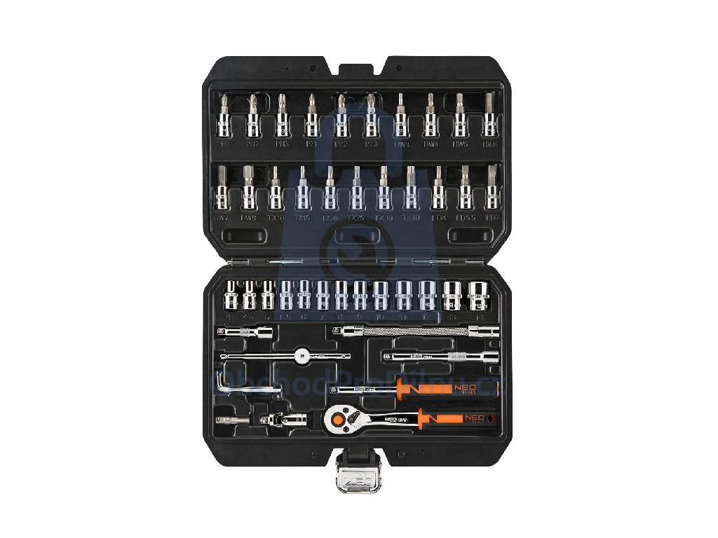 Praktická sada nářadí gola 1/4 od značky NEO tools obsahuje celkem 46 dílů. Sada je vhodná pro všechny domácí kutily i profesionály. Všchny tyto díly jsou vyrobeny z kvalitní chrom-vanadiové oceli zajišťující dlouhou životnost výrobku. Sada se skládá z nástrčných hlavic v rozměru od 4 mm do 14 mmm. Dále je v sadě kvalitní ráčna a šroubovací bity, které jsou křížové, ploché, šestihranné i TORX. V neposlední řadě zde naleznete i univerzální kloub, prodlužovací nástavce, rukojeť typu T, šestihranné klíče nebo rukojeť na šroubovací bity.