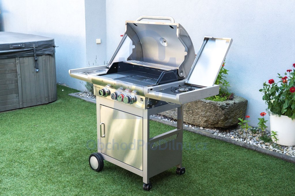 Čtyři hořáky – tři hlavní nerezové hořáky a jeden boční hořák pro vaření.