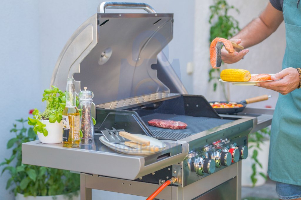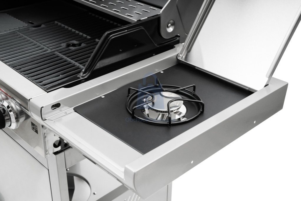 Plynový zahradní gril je vybaven třemi hlavními nerezovými hořáky a jedním bočním hořákem pro vaření v nádobách. Grilovací plocha je osazena litinovým roštem a litinovým plátem. Součástí je systém Flame Tamer pro řízení odvodu tuku a rovnoměrné rozložení tepla, který omezuje vzplanutí odkápavajícího tuku.