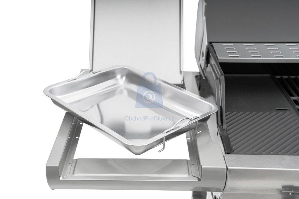 Gril je osazen elektrickým zapalováním, plynulou regulací plynu a vestavěným teploměrem ve víku. Konstrukce je vyrobena z nerezu. Díky čtyřem kolečkům lze gril snadno přesouvat. Disponuje navíc bočními odkládacími plochami, úložným prostorem a integrovanou marinovací miskou.