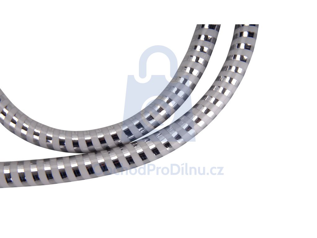 Sprchová hadice určená pro připojení sprchové hlavice k baterii. Slouží k flexibilnímu rozvodu vody při sprchování v koupelnách a sprchových koutech. Hadice je vyrobena z PVC materiálu v černo / stříbrném provedení. Délka 150 cm odpovídá běžnému domácímu použití a standardním sprchovým instalacím.