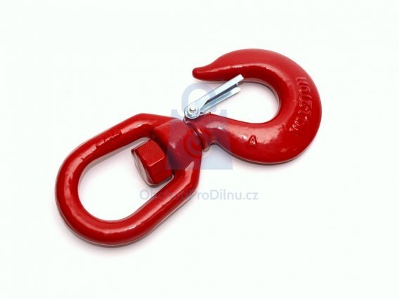 Hák otočný typ 322A je vyroben ze zušlechtěné oceli značky C45E s povrchovou úpravou KOMAXIT v červené barvě. Používá se ve spojení s lanem nebo řetězem ke zvedání či spouštění břemen. Osové ložisko umožňuje otáčení pod zátěží, což je velkým přínosem. Komaxitovaný hák lze zajistit pozinkovanou pojistkou, díky tomu ho můžete jednoduše nainstalovat na řetěz a zaroveň tím předejít vyháknutí zvedaného břemena při manupulaci. Háky s okem slouží jako spojovací komponenty pro stavební a lesnický průmysl.