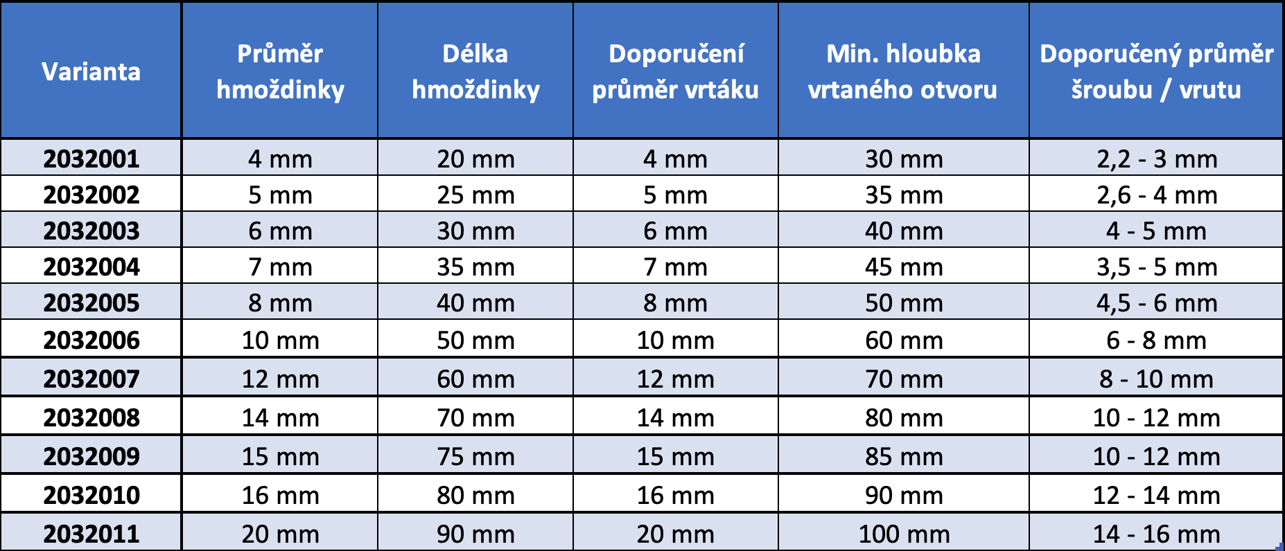 - lze použít s vruty do dřeva, dřevotřísky a metrickými šrouby
