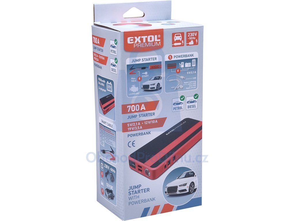 Prodej jump startérů pro naftové a benzínové motory/powerbanka, 700 A, EXTOL PREMIUM je realizován po jednotlivých kusech. Jednotlivé varianty, základní technická data, aktuální ceny a dostupnosti naleznete výše.