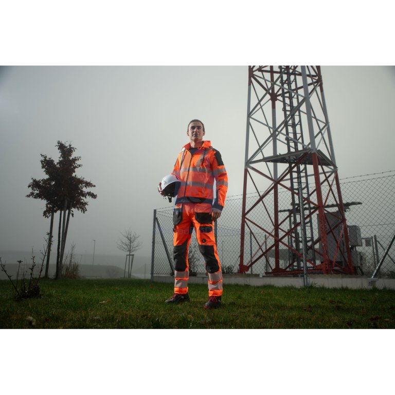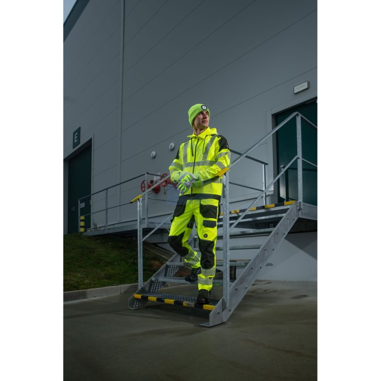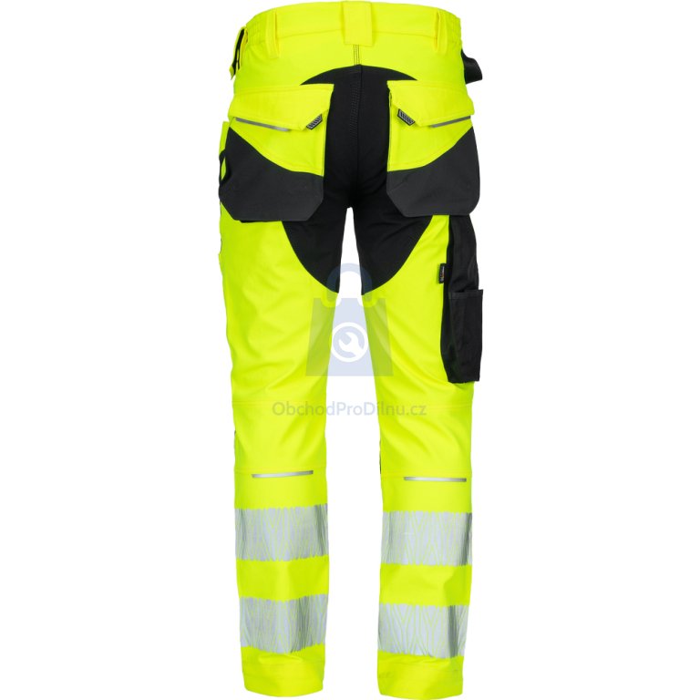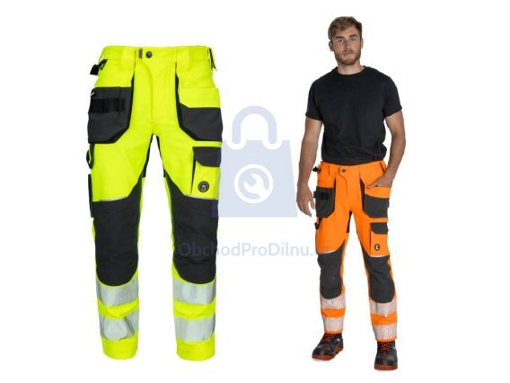 | provedení, specifické vlastnosti | pracovní kalhoty navržené pro viditelnost, pohodlí a odolnost při pohybově náročné práci |