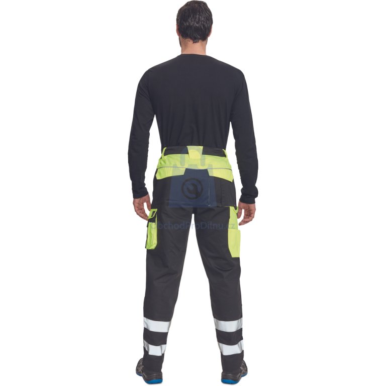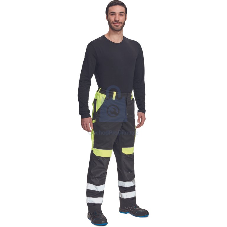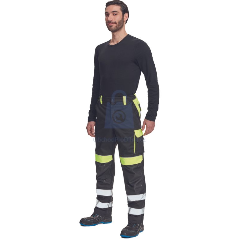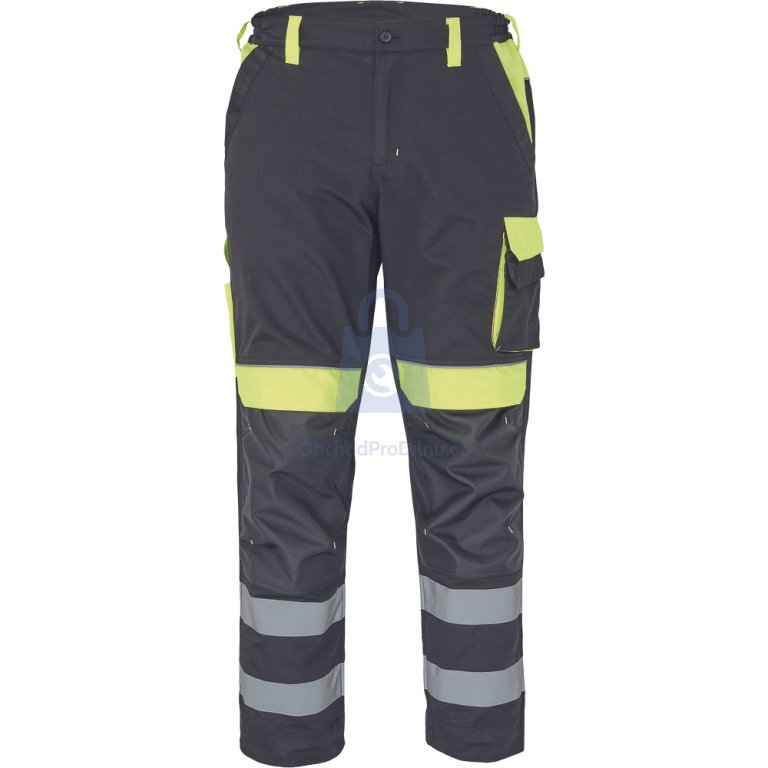 Kalhoty mají elastický pas, možnost prodloužení nohavic až o 5 cm a zesílené kolenní kapsy s možností horního vkládání nákoleníků. Úložný prostor zajišťují 2 přední kapsy, 1 zdvojená stehenní kapsa, 2 zadní kapsy a 2 menší kapsičky na pravém stehnu. Bezpečnost zvyšuje dvojice našitých reflexních pruhů šířky 5 cm na spodní části nohavic a reflexní paspulky. Kalhoty jsou certifikovány dle normy EN ISO 13688 a jsou skvělou volbou pro široké spektrum pracovních činností v terénu i dílně. Pro firmy nabízíme výhodnější ceny při větších odběrech pracovního oblečení – v případě zájmu nás kontaktujte na velkoobchod@obchodprodilnu.cz.