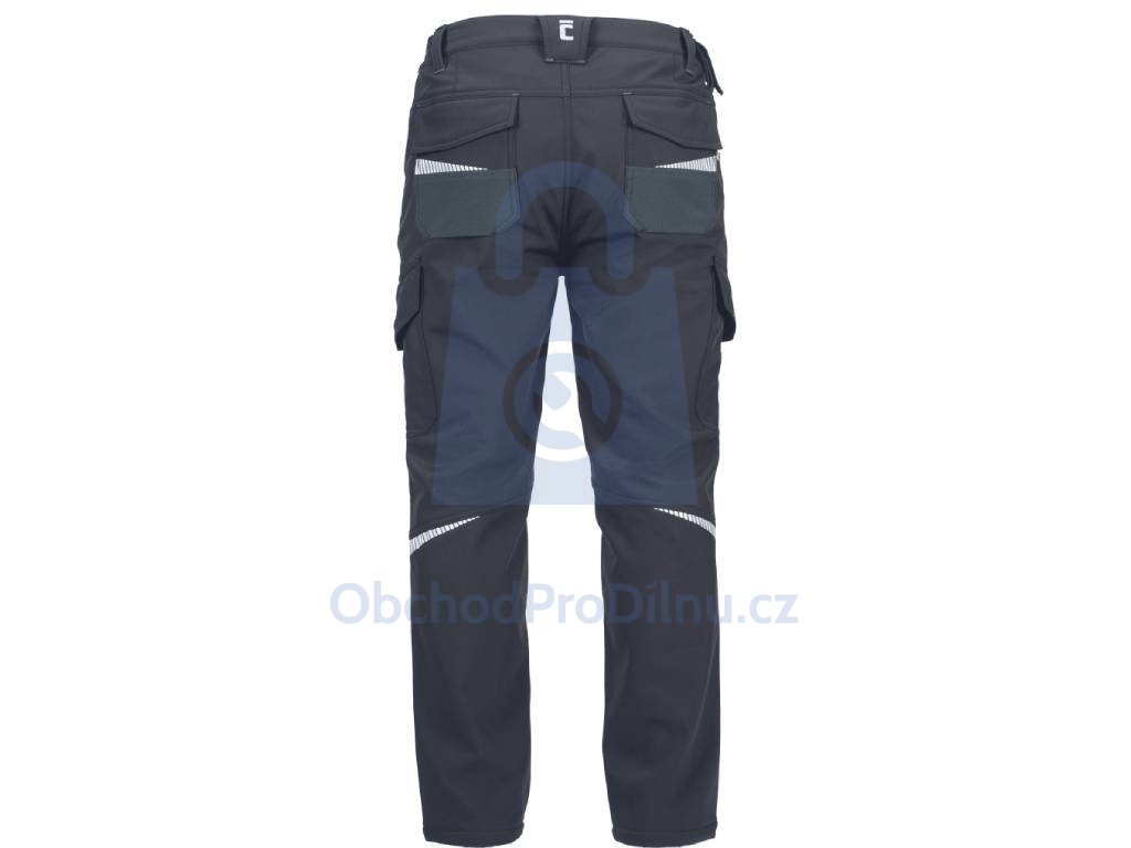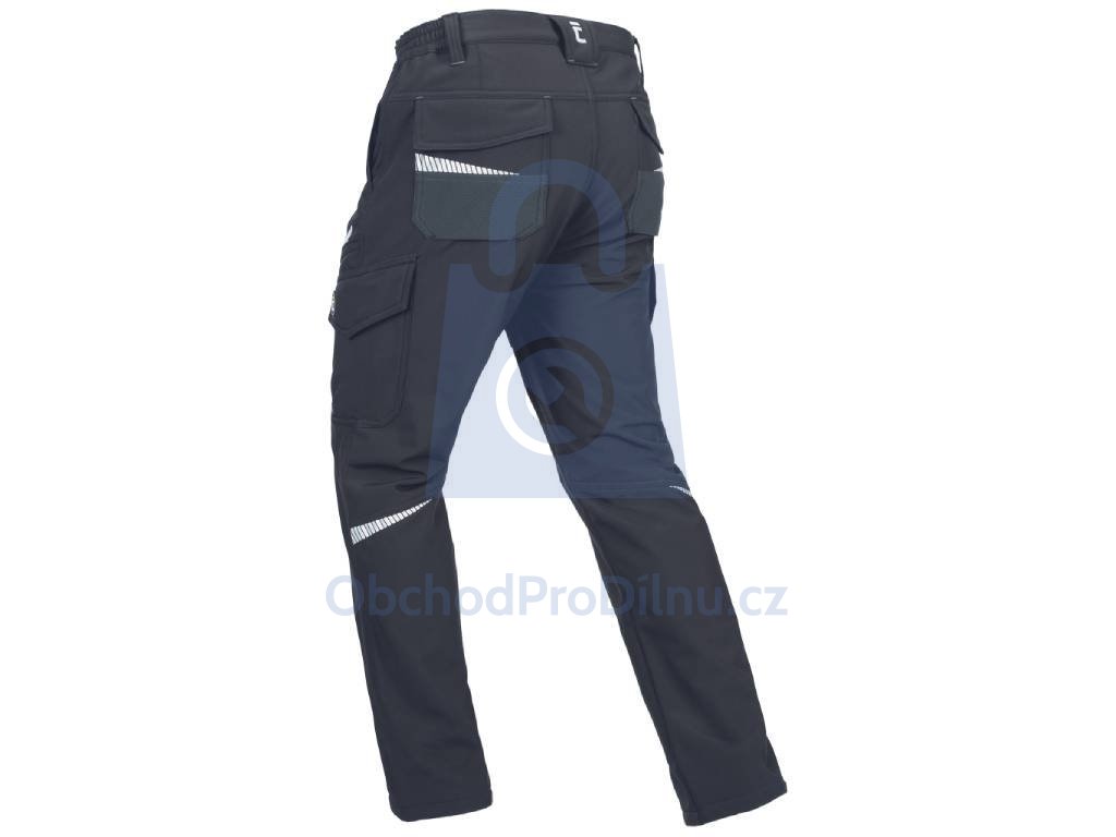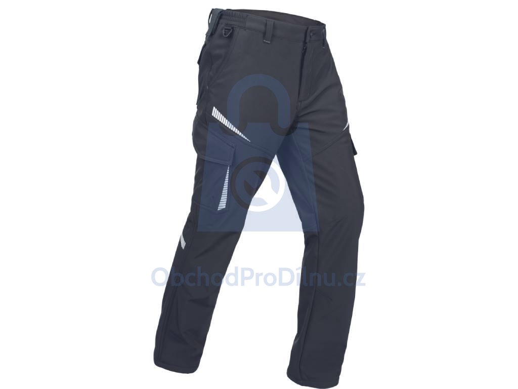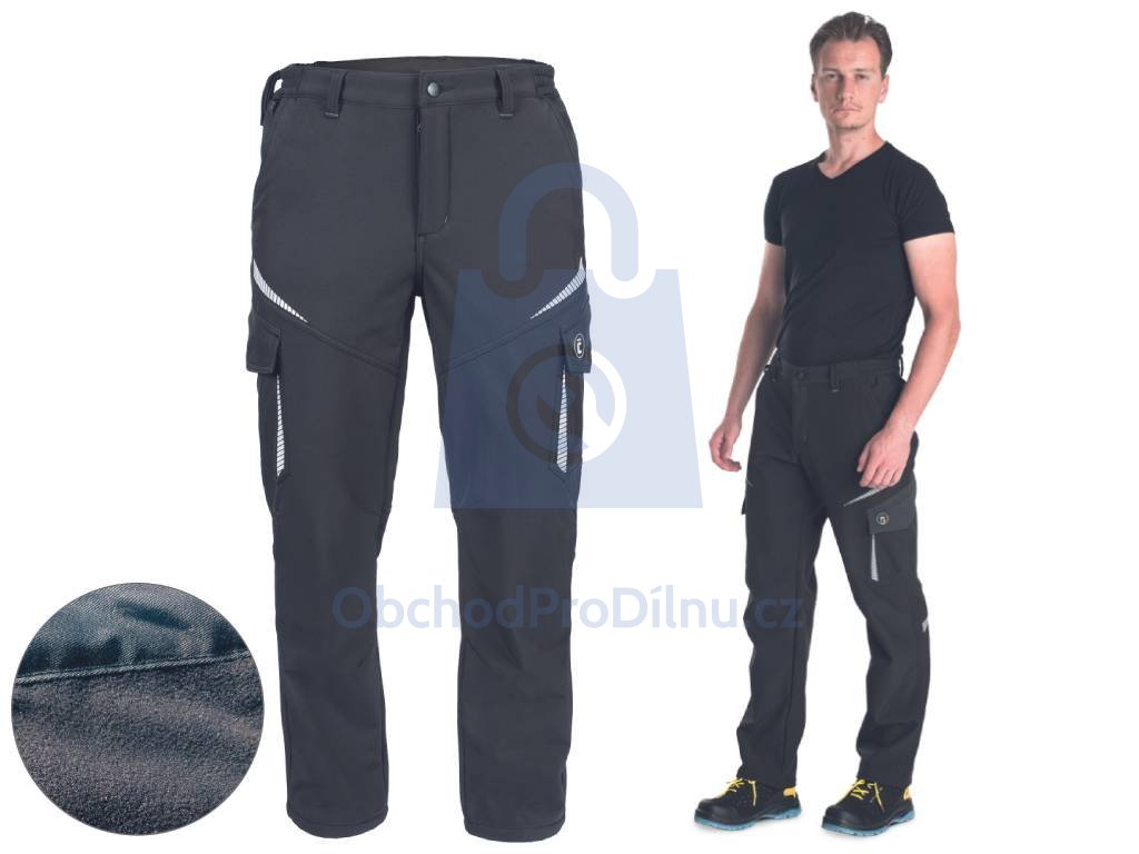 provedení, specifické vlastnosti teplé a voděodolné pracovní kalhoty z pružného softshellu s fleecovou podšívkou