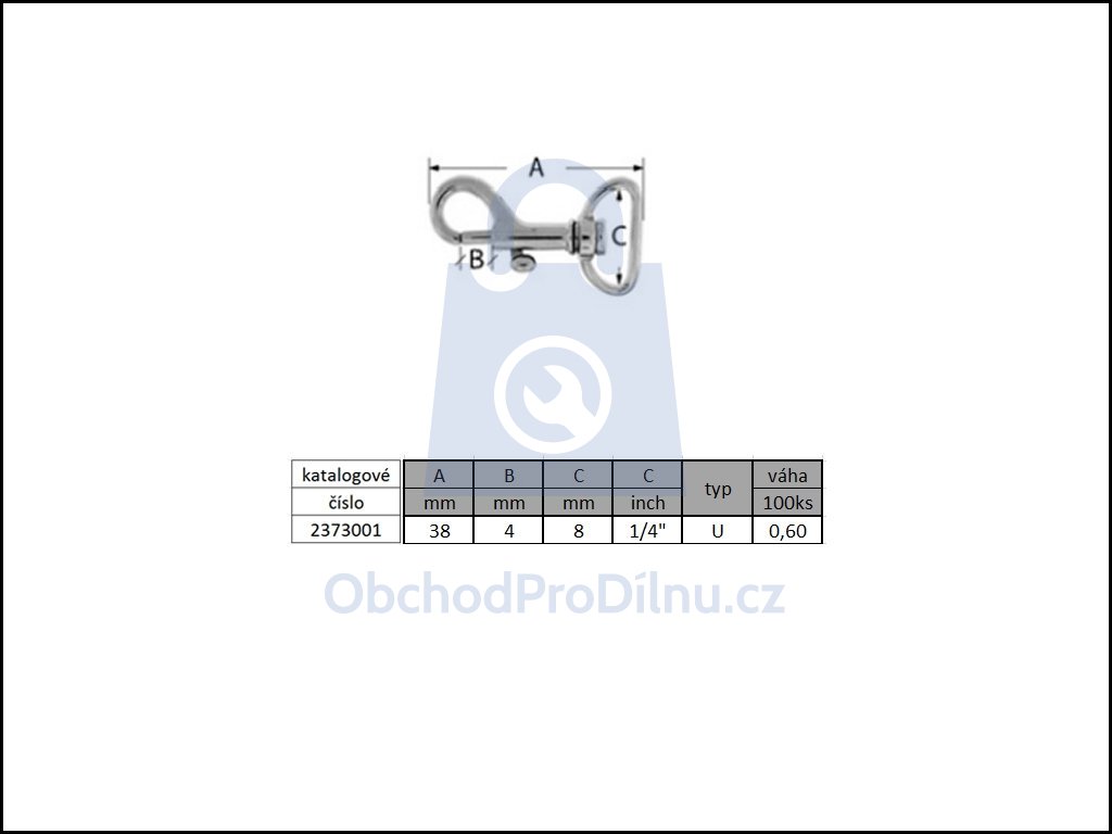 | 2373001h | ks | 6 mm | 38 | 8 | 0,391 | 1 ks | 0,391 | 0,474 | skladem | 0,450 |