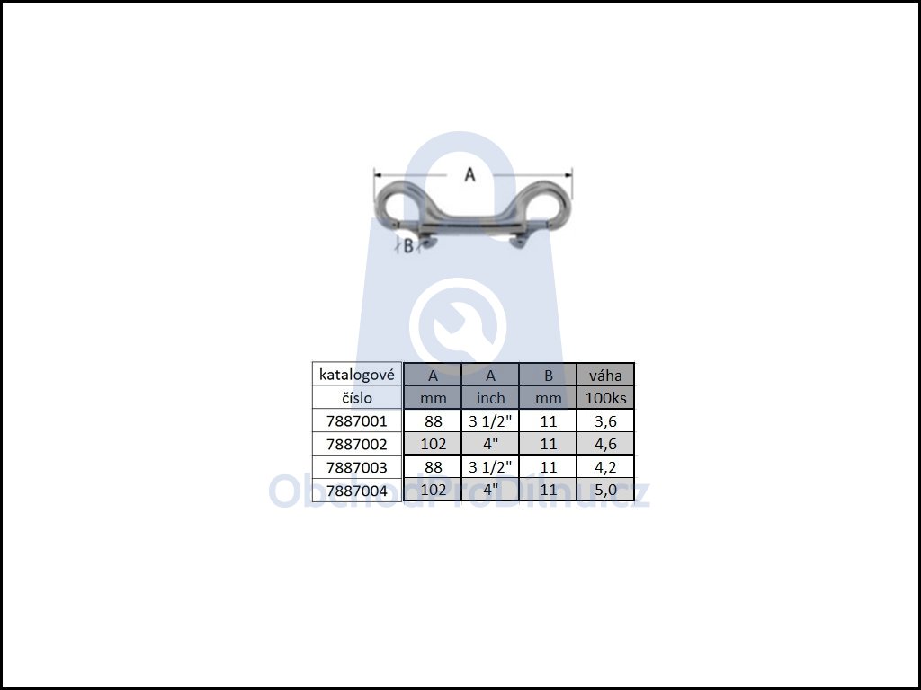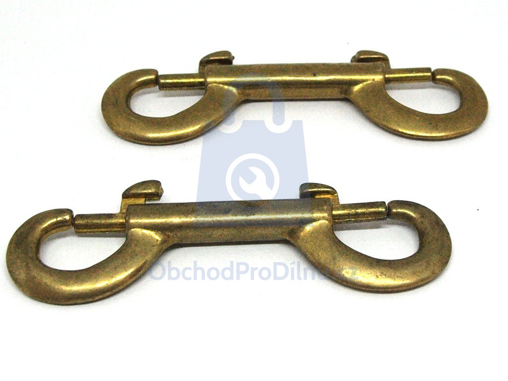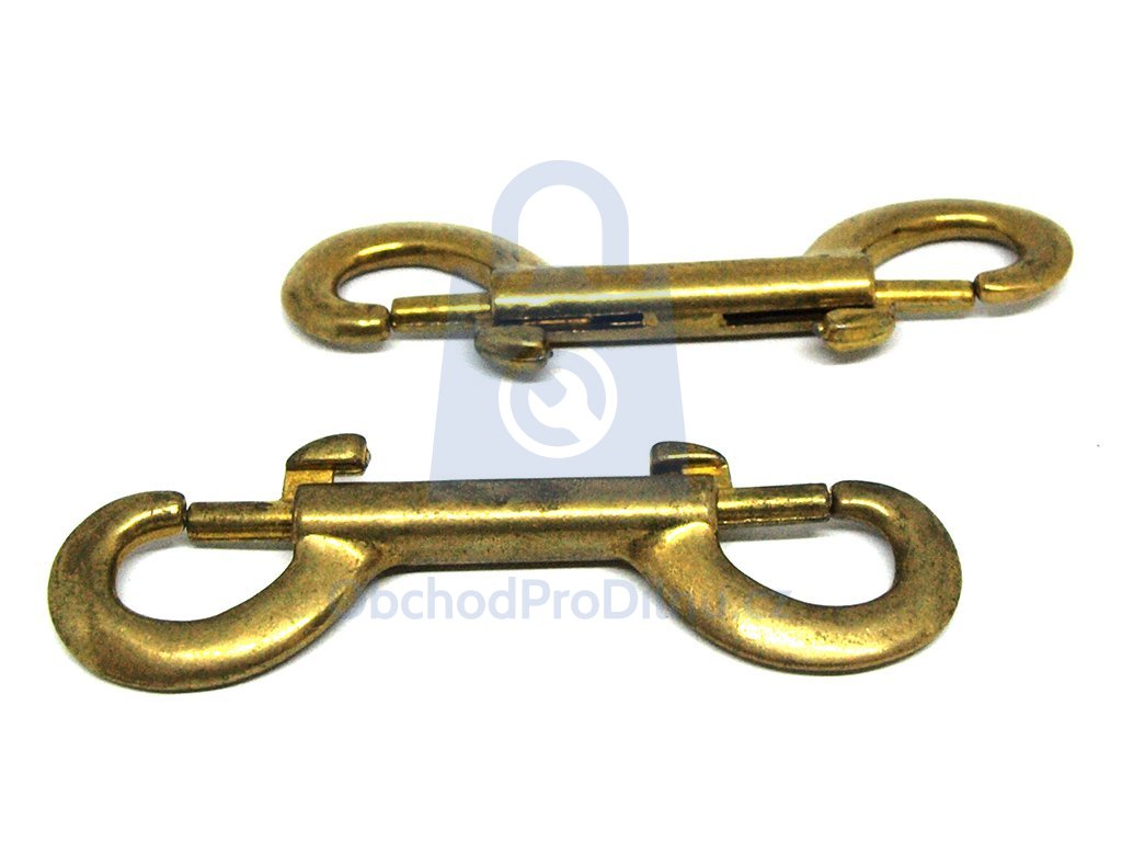 Karabina oboustranná, povrchově upravená je velmi kvalitní, odolná, univerzální karabina, která je vyrobena z litiny s povrchovou úpravou nikl či mosaz. Na obouch stranách karabiny se nachází otočné očko pro uchycení popruhů a zajištění pružinovou pojistkou. Karabiny nabízíme ve velikostech 88 mm a 102 mm. Karabina je vhodná pro vodítka, klíčenky, textilní či kožené popruhy.