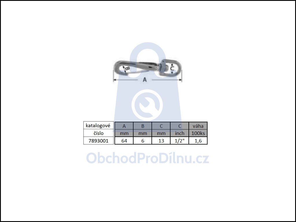 Karabina s pružinou otočná malá, poniklovaná je karabina s otočným okem, která je vyrobena z poniklované zinkové slitiny Zamak2 (ZnAl4Cu3). Karabina má otočné oko ve tvaru písmene D a je tak určena pro lana i popruhy. Součástí karabiny je pružinová západka, která brání nechtěnému uvolnění karabiny. Tyto karabiny nabízíme po jednotlivých kusech nebo jako cenově výhodnější balení po 25 kusech.