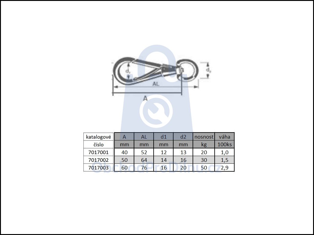 | provedení, specifické vlastnosti | karabina s pružinou a D koružkem |