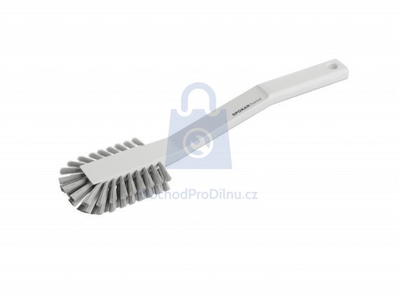 Kartáč na nádobí HOME s robustní konstrukcí je vyroben z kvalitního materiálu. Půlkulatá hlava s odolnými polesterovými vlákny se při mytí nádobí vymyje i hůř dostupné části nádobí. Pomocí kartáče snadno odstraníte odolné a zaschlé nečistoty - pro ještě lepší účinek jsou vlákna, která jsou umístěná na přední části hlavy kartáče, tužší. S těmi nejodolnějšími nečistotami a připáleninami si poradí škrabka, která se nachází na konci kartáče.