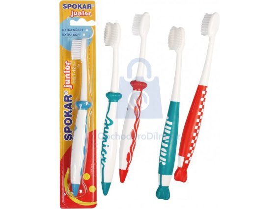 Dětský zubní kartáček SPOKAR J je osazen kvalitními vlákny s rovným zástřihem. Masivní držadlo kartáčku ergonomicky vytvarované s měkkou protiskluzovou vrstvou ve tvaru rakety či kytičky, což umožňuje pohodlné držení. Vlákna jsou vysoce kvalitní, jsou šetrná k dětským dásním a účinně odstraňují zubní plak.